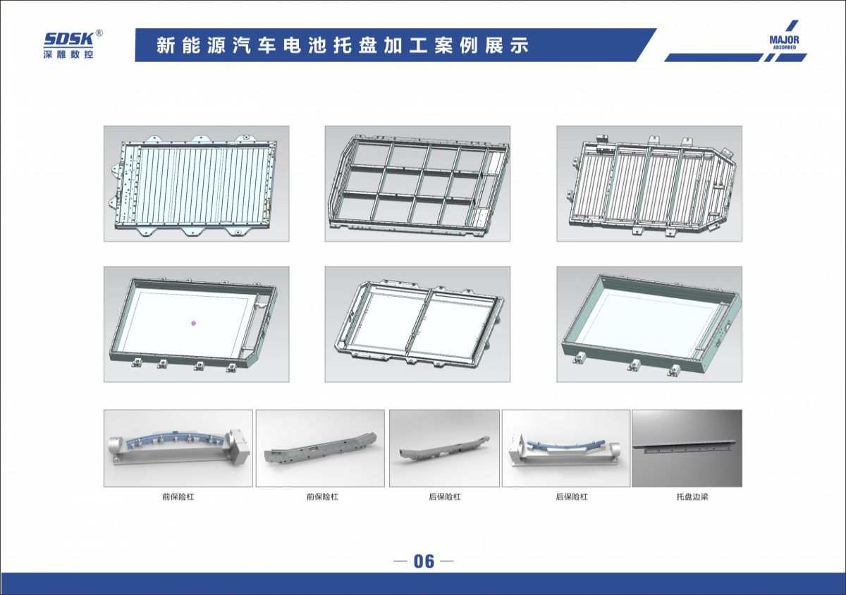 應(yīng)用加工領(lǐng)域:新能源電池托盤加工/航空航天細長零配件/機翼配件磁懸浮高鐵行李架/電池盒/鋁通風裝置/燈源主體前燈鋁制品